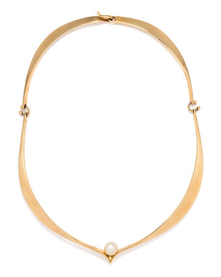 A Modernist Yellow Gold and Cultured Pearl Collar Necklace, Ed Wiener,