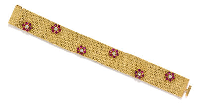 An 18 Karat Yellow Gold, Ruby and Diamond Bracelet, British, Circa 1969,