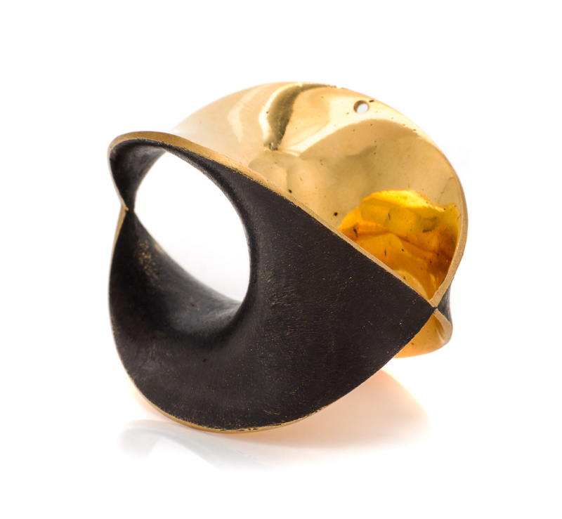 attributed to Robert Engman, consisting of an abstract anticlastic form with black rhodium finish.