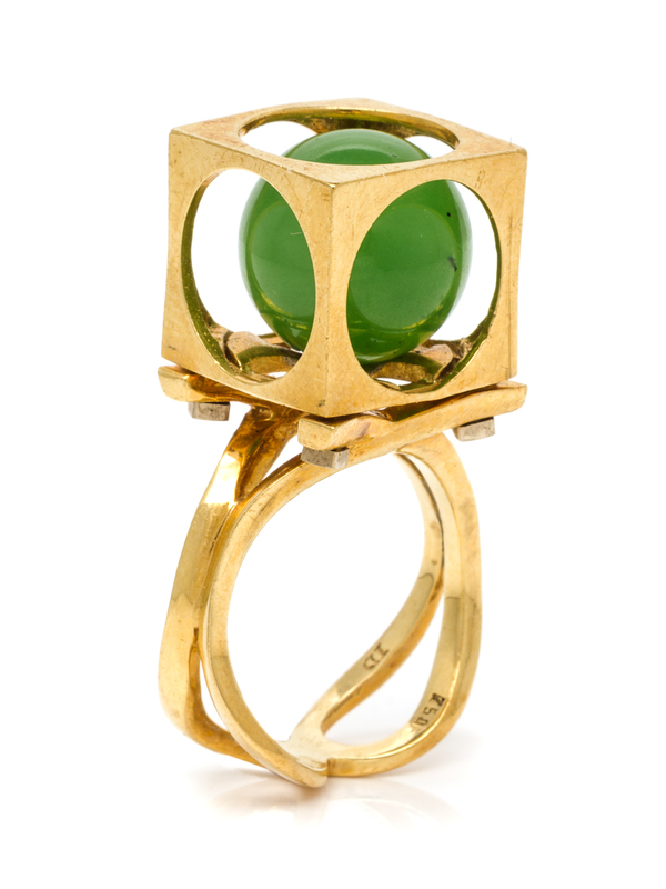 A Modernist 18 Karat Yellow Gold and Nephrite Jade Ring,