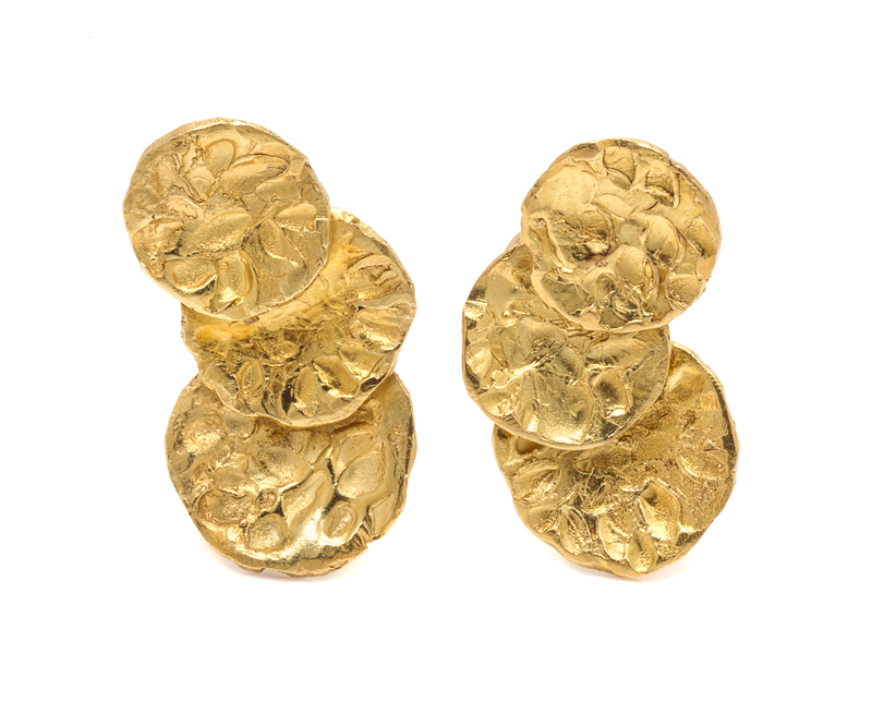 A Pair of Modernist Brutalist 18 Karat Yellow Gold Earclips, British, Circa 1978,