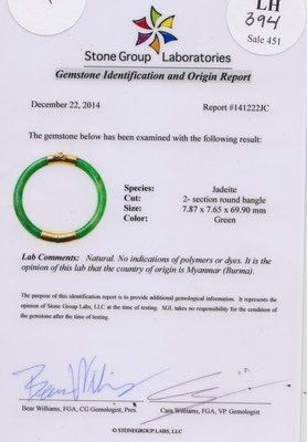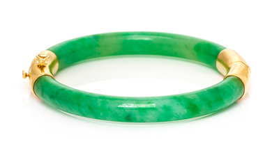 A Yellow Gold and Jadeite Jade Bangle Bracelet,