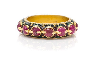 A High Karat Yellow Gold, Ruby and Enamel Band,