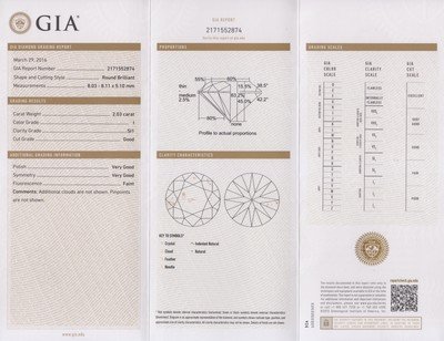 A 2.03 Carat Round Brilliant Cut Diamond,