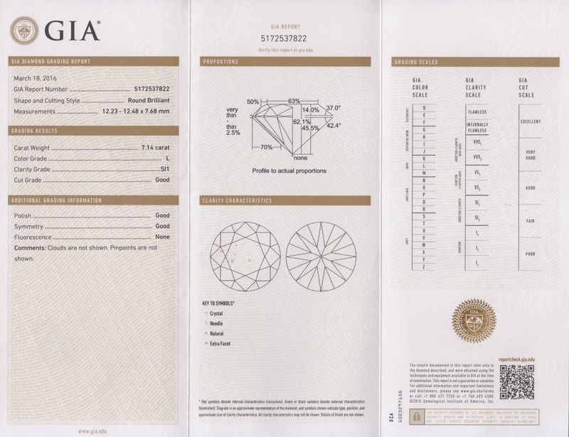 A 7.14 Carat Round Brilliant Cut Diamond,