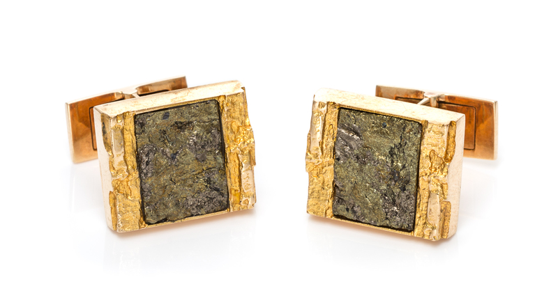 A Pair of Yellow Gold and Chalcopyrite Cufflinks, Bjorn Weckstrom for Lapponia,