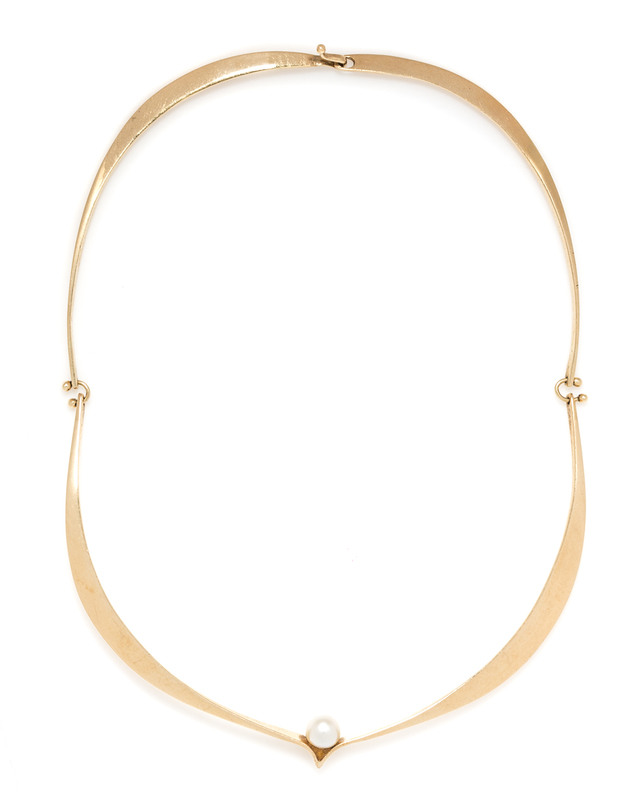 A Modernist Yellow Gold and Cultured Pearl Collar Necklace, Ed Wiener, Circa 1952,