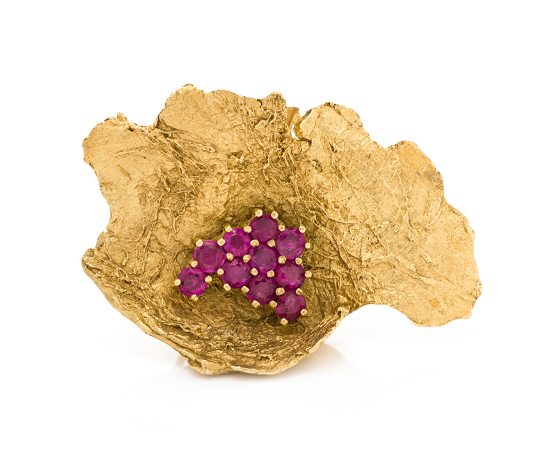 A Modernist Yellow Gold and Ruby Brooch, Ed Wiener,