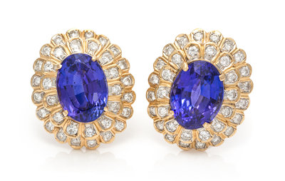 A Pair of Yellow Gold, Tanzanite and Diamond Earrings,