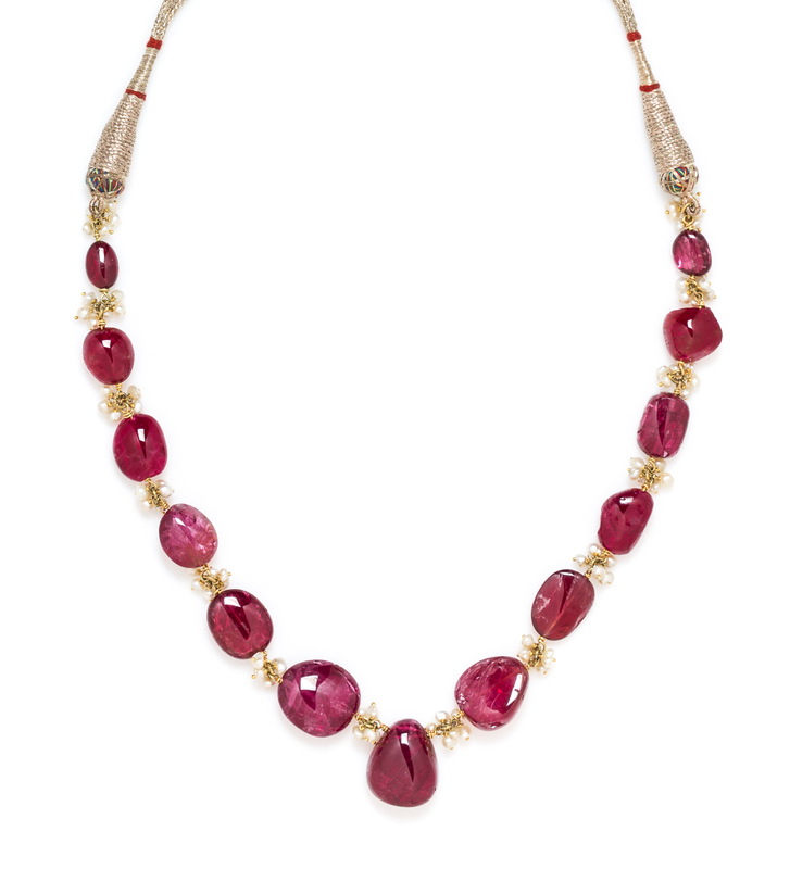 A Fine Spinel Bead and Natural Pearl Necklace,