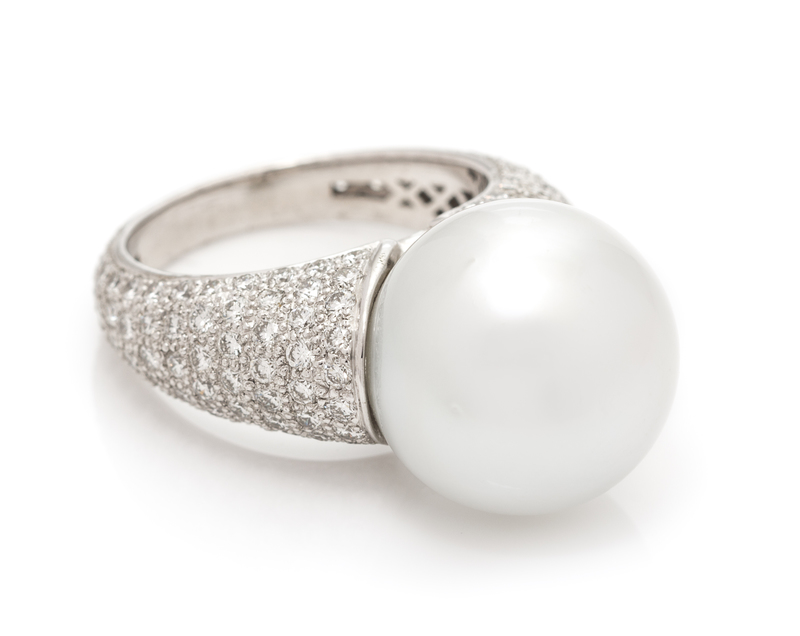 A Platinum, Diamond and Cultured South Sea Pearl Ring,