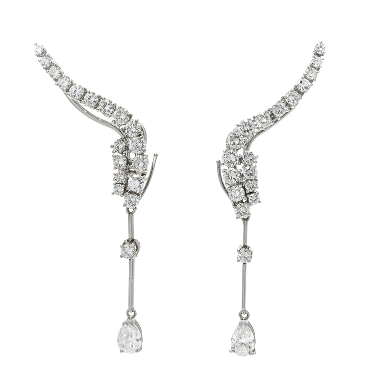 A Pair of 18 Karat White Gold and Diamond "Waterfall" Earclips, Stefan Hafner,