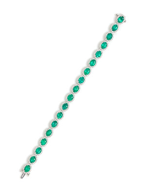 An 18 Karat White Gold, Emerald, and Diamond Bracelet,