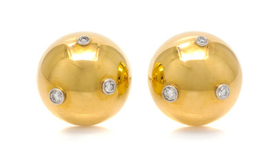 A Pair of 18 Karat Yellow Gold, Platinum and Diamond Earclips, Paloma Picasso for Tiffany & Co.,