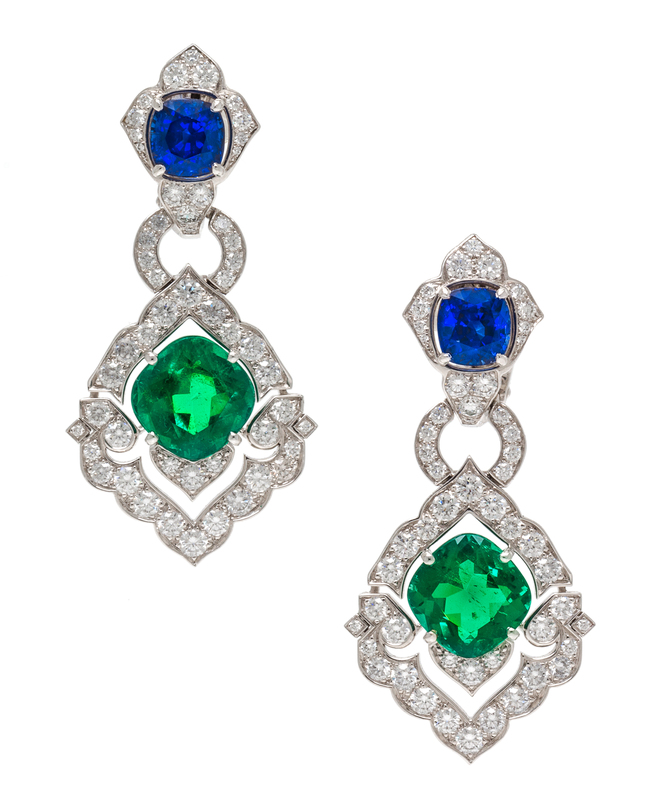 An Important Pair of Platinum, Emerald, Sapphire and Diamond "Victoria" Earclips, Cartier, Circa 2008,