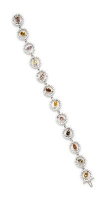 An 18 Karat White Gold, Colored Diamond and Diamond Bracelet,