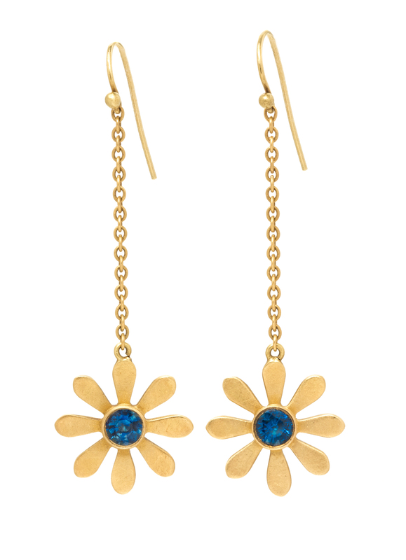 A Pair of 18 Karat Yellow Gold and Sapphire Earrings,