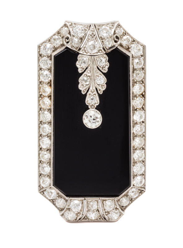 An Art Deco, Platinum, Diamond and Onyx Pendant/Clip Brooch,