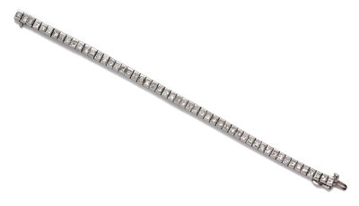 containing 52 princess cut diamonds weighing approximately 10.40 carats total.Stamp: 14K 3 1/4.