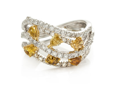 An 18 Karat White Gold, Colored Diamond and Diamond Ring,