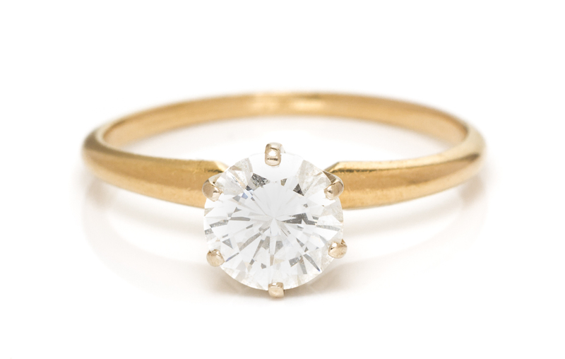 A 14 Karat Yellow Gold and Diamond Solitaire Ring,
