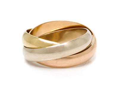 consisting of interlocking white, rose and yellow gold bands.Stamp: Les must de Cartier 750 47.