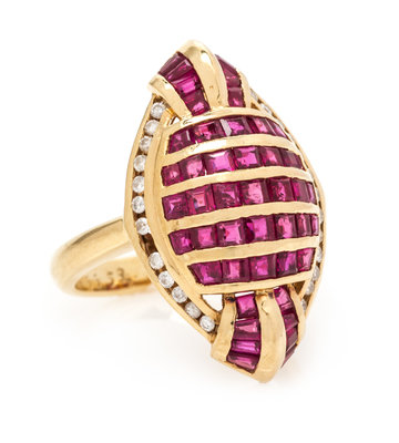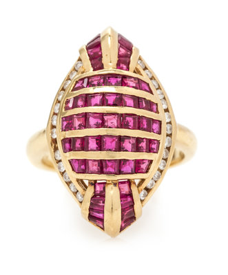 An 18 Karat Yellow Gold, Ruby and Diamond Ring, LeVian,
