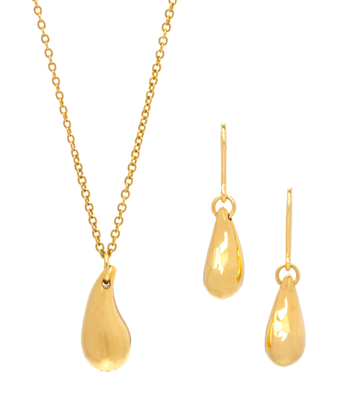 An 18 Karat Yellow Gold Teardrop Demi Parure, Elsa Peretti for Tiffany & Co,
