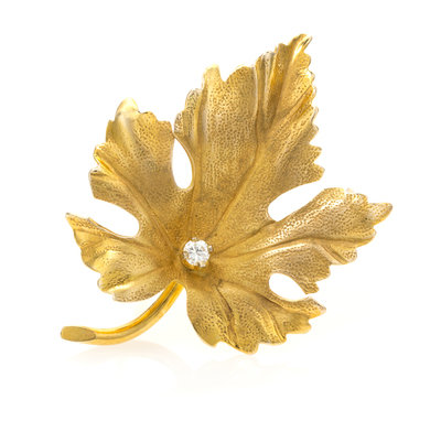 A Yellow Gold and Diamond Maple Leaf Brooch, Tiffany & Co.,