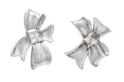 A Pair of Sterling Silver Bow Motif Earrings, Angela Cummings, Circa 1984,