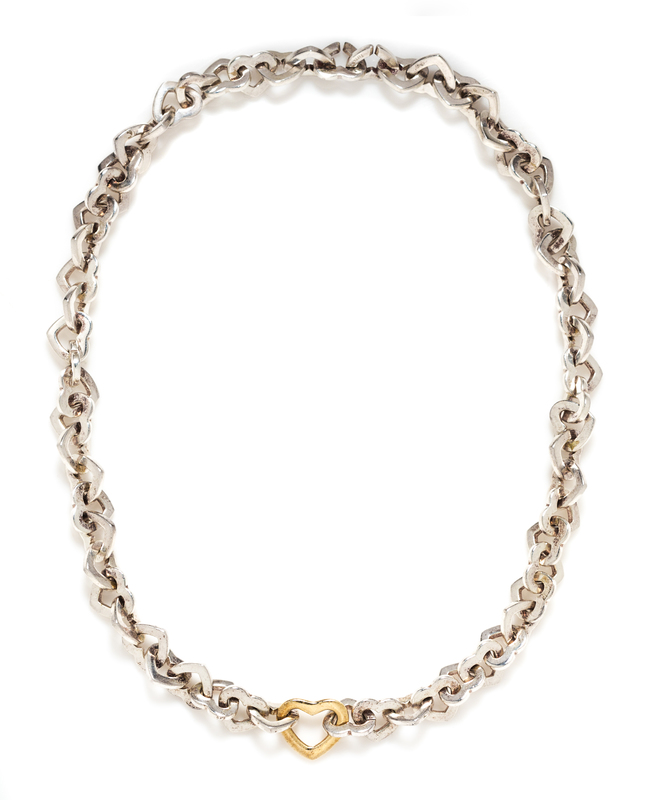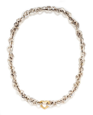 consisting of a sterling silver picture frame measuring approximately together with a sterling silver and yellow gold heat shape open link necklace.Frame stamp: 925 T&CO. 1837 TIFFANY&CO MAKER'S 925.Necklace stamp: TIFFANY&CO 925.Accompanied by a pouch and box signed Tiffany & Co.
