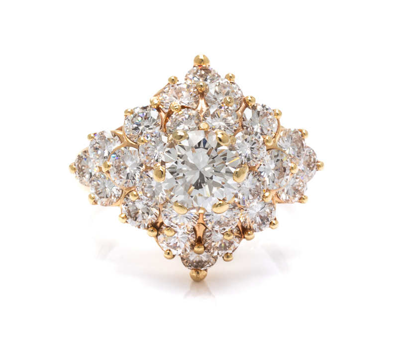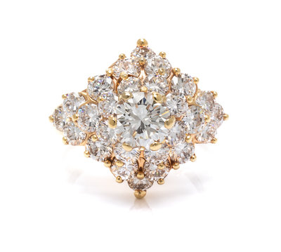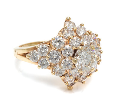 A 14 Karat Yellow Gold and Diamond Cluster Ring,