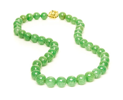 containing 45 beads measuring approximately 9.71-11.00 mm in diameter strung with a 14 karat yellow gold polished and textured clasp.Stamp: 14K LC.
