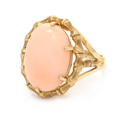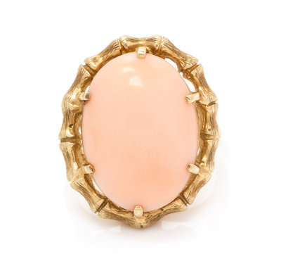 A Yellow Gold and Coral Ring,