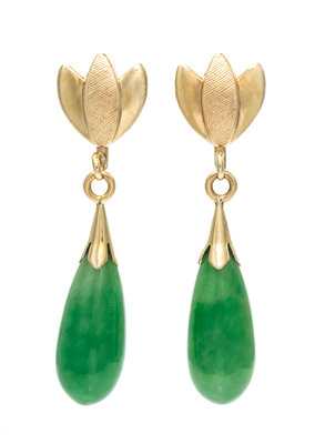 A Pair of Yellow Gold and Jade Earrings,