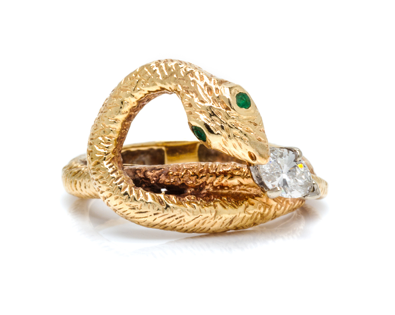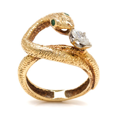 A Yellow Gold, Diamond, and Emerald Serpent Ring,