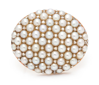 A Victorian Yellow Gold, Pearl and Diamond Brooch,