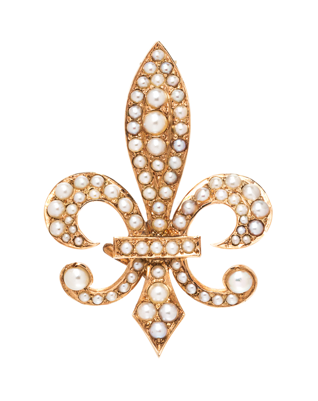 An Antique Rose Gold and Seed Pearl Fleur-de-Lys Pendant/Brooch,