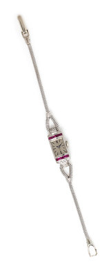 An 18 Karat White Gold, Ruby and Diamond Wristwatch, Movado Factories,