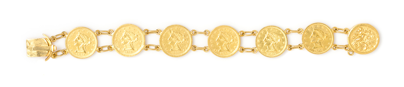 A Yellow Gold and US $2 1/2 Dollar Liberty Head Coin Bracelet,