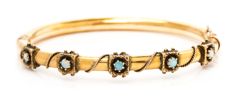 A 14 Yellow Gold and Opal Bangle Bracelet,