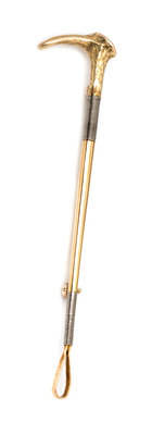 A Retro Yellow Gold and Platinum Riding Crop Pin,