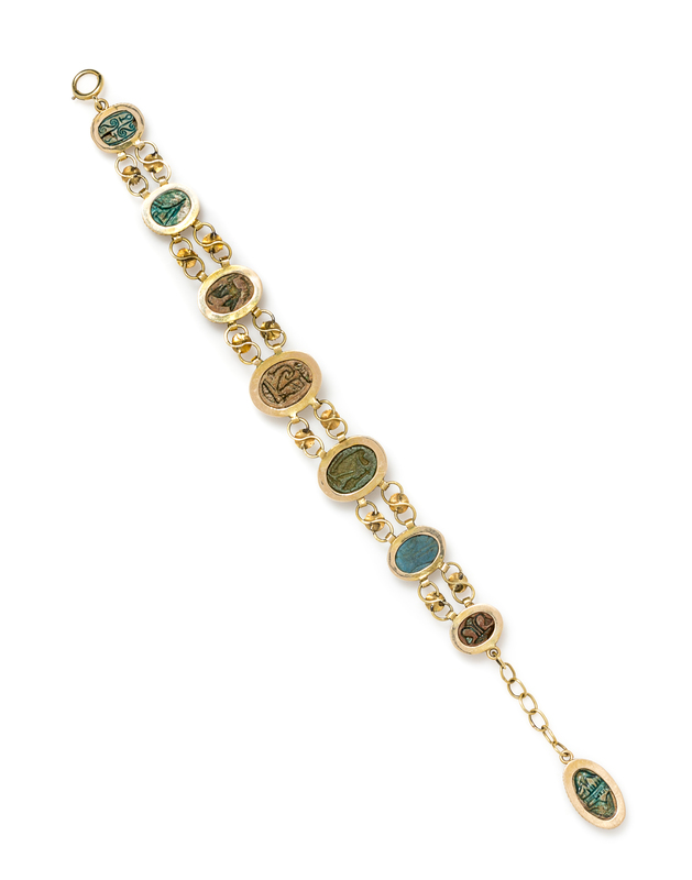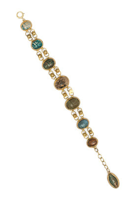 A Yellow Gold, Faience and Hardstone Scarab Bracelet,