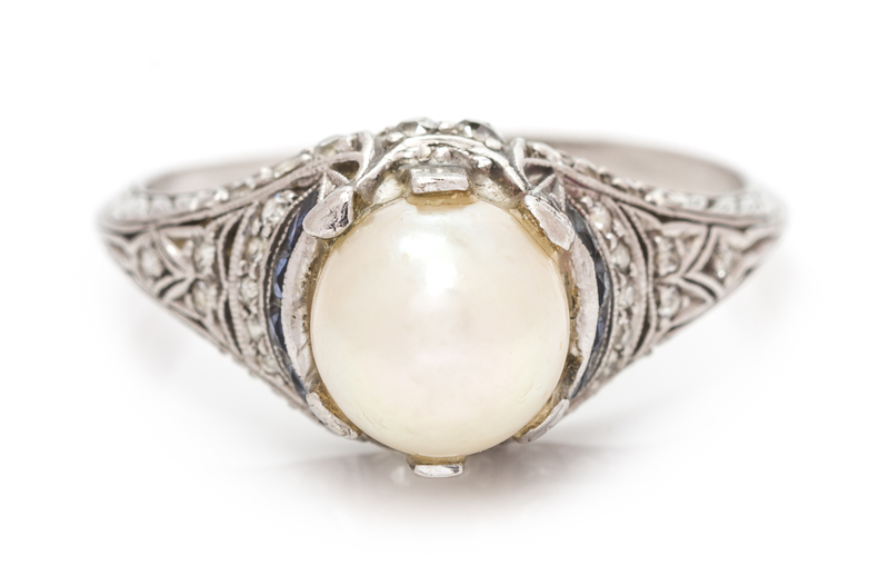 An Art Deco Platinum, Pearl, Diamond and Sapphire Ring,