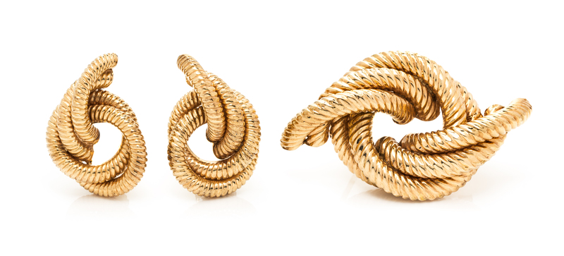 A 14 Karat Rose Gold Knot Motif Demi Parure,