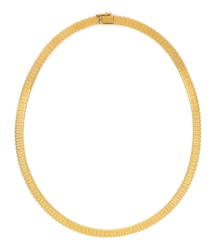 with a textured gold finish with a scalloped edge. Stamp: 750.