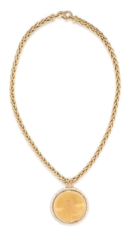 A 14 Karat Yellow Gold, US $20 1927 Liberty Head Coin and Diamond Necklace,