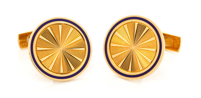 A Pair of 18 Karat Yellow Gold and Enamel Cuff Links, Bulgari,