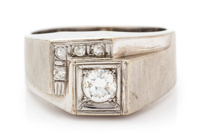 containing one old European cut diamond weighing approximately 0.28 carat, and four round single cut diamonds weighing approximately 0.06 carat total.