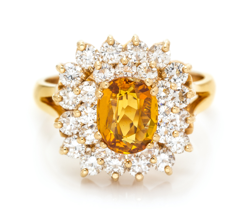 An 18 Karat Yellow Gold, Yellow Sapphire and Diamond Ring,
